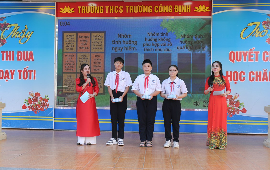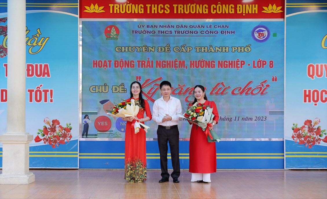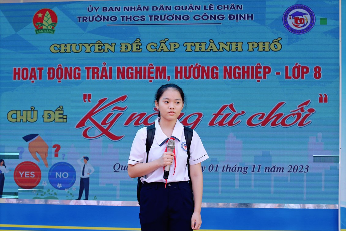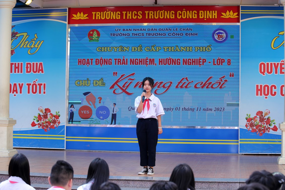 Hoạt động trải nghiệm, hướng nghiệp là một hoạt động giáo dục mới trong chương trình Giáo dục phổ thông 2018, thực hiện nhiệm vụ năm học 2023 – 2024, với mục đích giúp các em học sinh rèn luyện các kĩ năng, khám phá bản thân, phát triển năng lực theo mục tiêu chương trình GDPT 2018, sáng thứ 4/01/11/2023 trường THCS Trương Công Định tổ chức thành công chuyên đề Đội cấp thành phố, chuyên đề chuyên môn cấp Quận môn Hoạt động trải nghiệm hướng nghiệp lớp 8 với chủ đề “Kỹ năng từ chối”