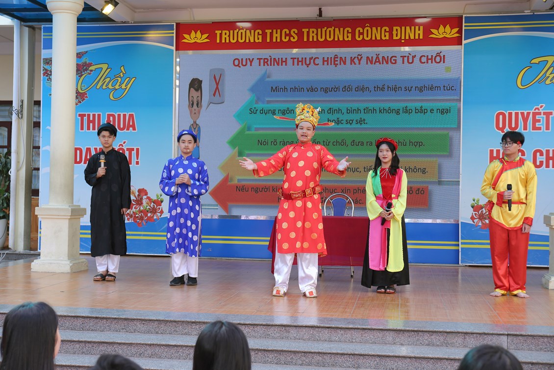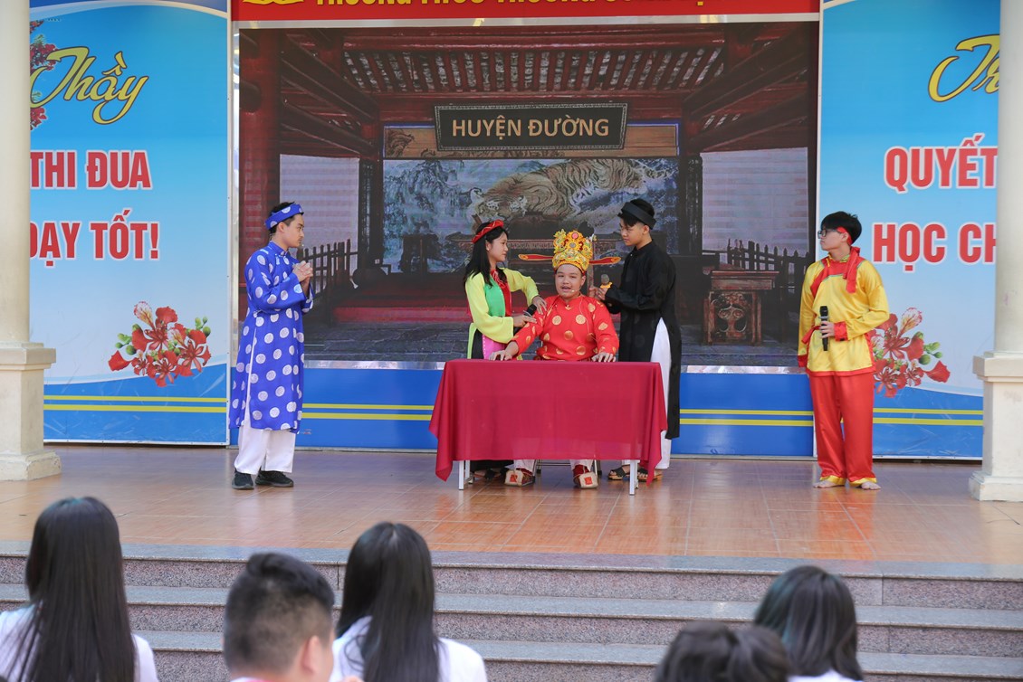 Tiết học diễn ra sôi nổi và ấn tượng với các tình huống, tiểu phẩm của các em học sinh khối 8 thông qua các nội dung: