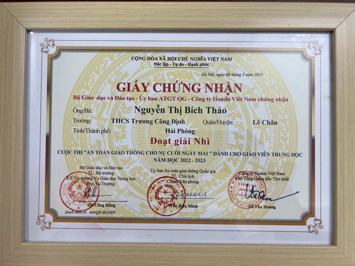 Trải qua nhiều vòng loại, trường THCS Trương Công Định vinh dự có cô giáo Nguyễn Thị Bích Thảo và em Phạm Ngọc Lương lớp 7C2 vinh dự lọt vào vòng chung kết cấp Quốc gia tổ chức tại Thành phố Nha Trang tỉnh Khánh Hoà từ ngày 24 – 26/3/2023 và đạt giải Nhì trong cuộc thi .