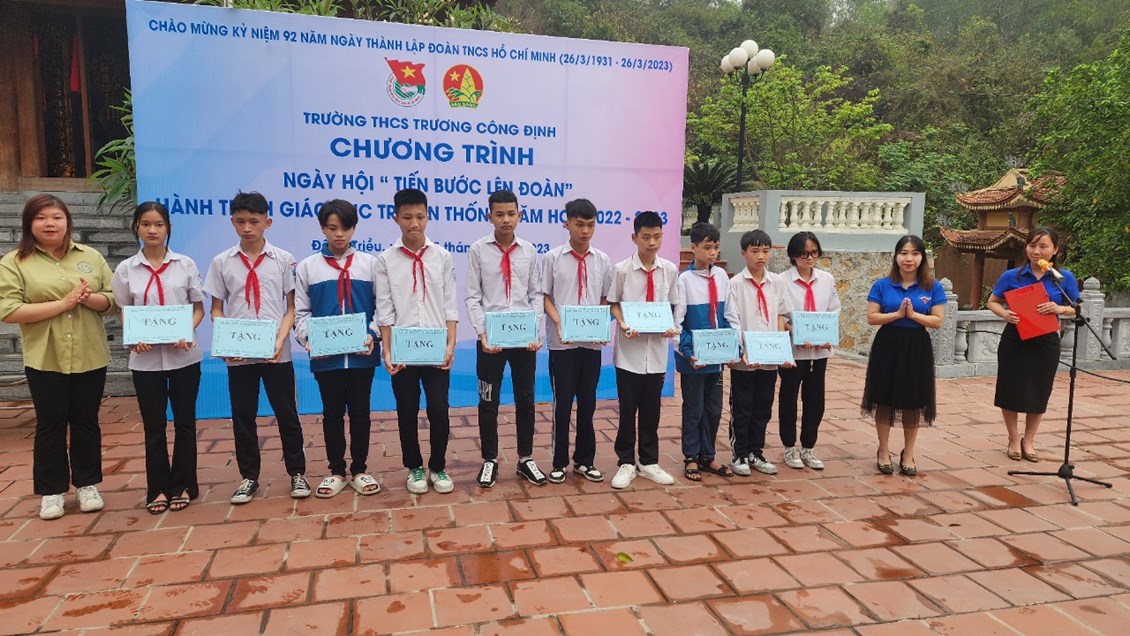 Thực hiện sự chỉ đạo của Quận đoàn, được sự đồng ý của Ban giám hiệu nhà trường, thứ 7/25/3/2023, Chi đoàn giáo viên trường THCS Trương Công Định đã tổ chức Hành trình đến địa chỉ đỏ - Giao lưu tặng quà cho thiếu nhi có hoàn cảnh khó khăn trên địa bàn xã Thủy An, Đông Triều, Quảng Ninh.