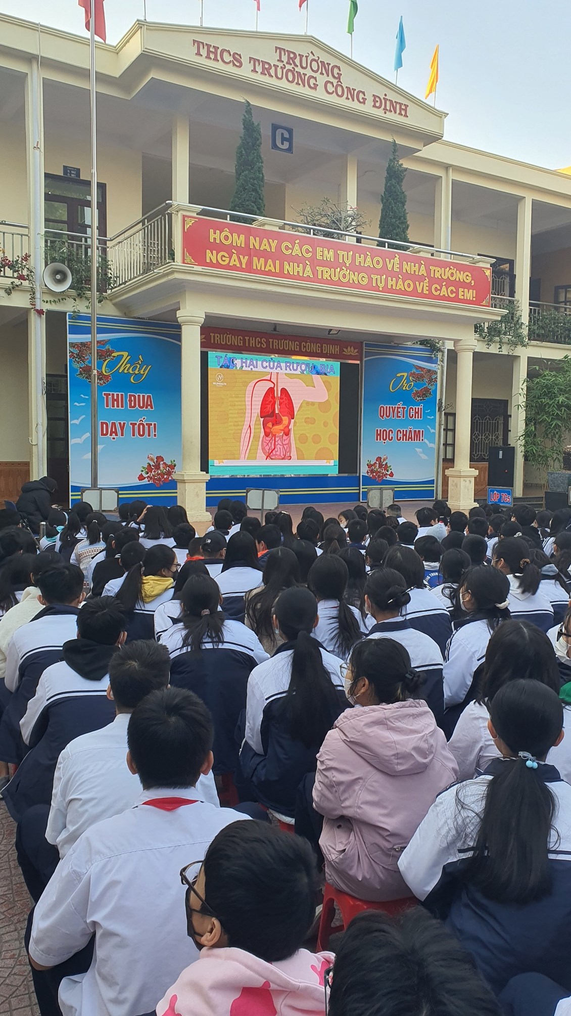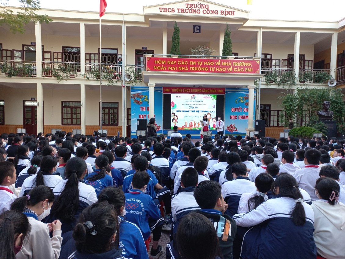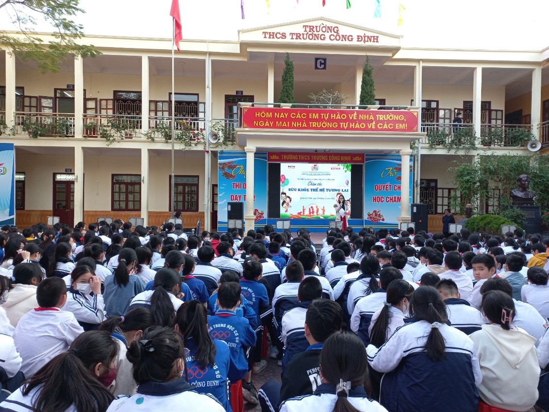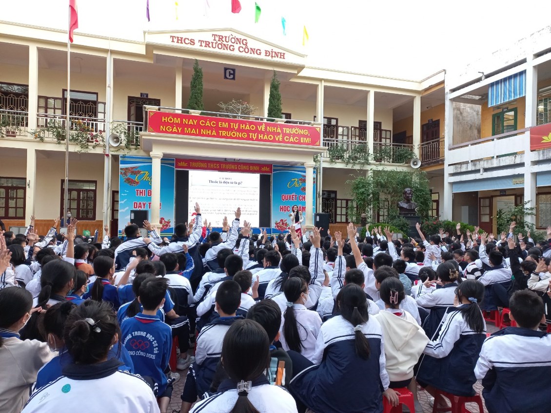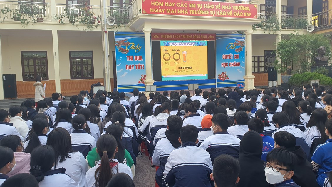 Với mục đích tuyên truyền và trang bị cho các em học sinh những kiến thức về các bệnh không lây nhiễm; tác hại của thuốc lá, rượu, bia; có chế độ dinh dưỡng hợp lí; có hiểu biết và chú ý về sức khỏe tâm thần, … ; được sự đồng ý của Ban giám hiệu nhà trường, thứ 2/19/12/2022, trường THCS Trương Công Định tổ chức hoạt động giáo dục kĩ năng sống cho các em học sinh với chủ đề “Chăm sóc sức khoẻ thế hệ tương lai”