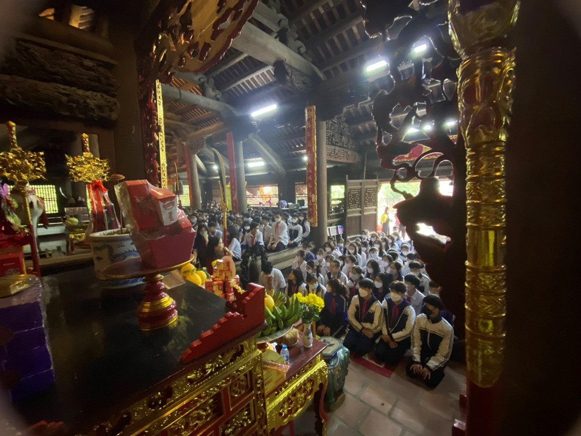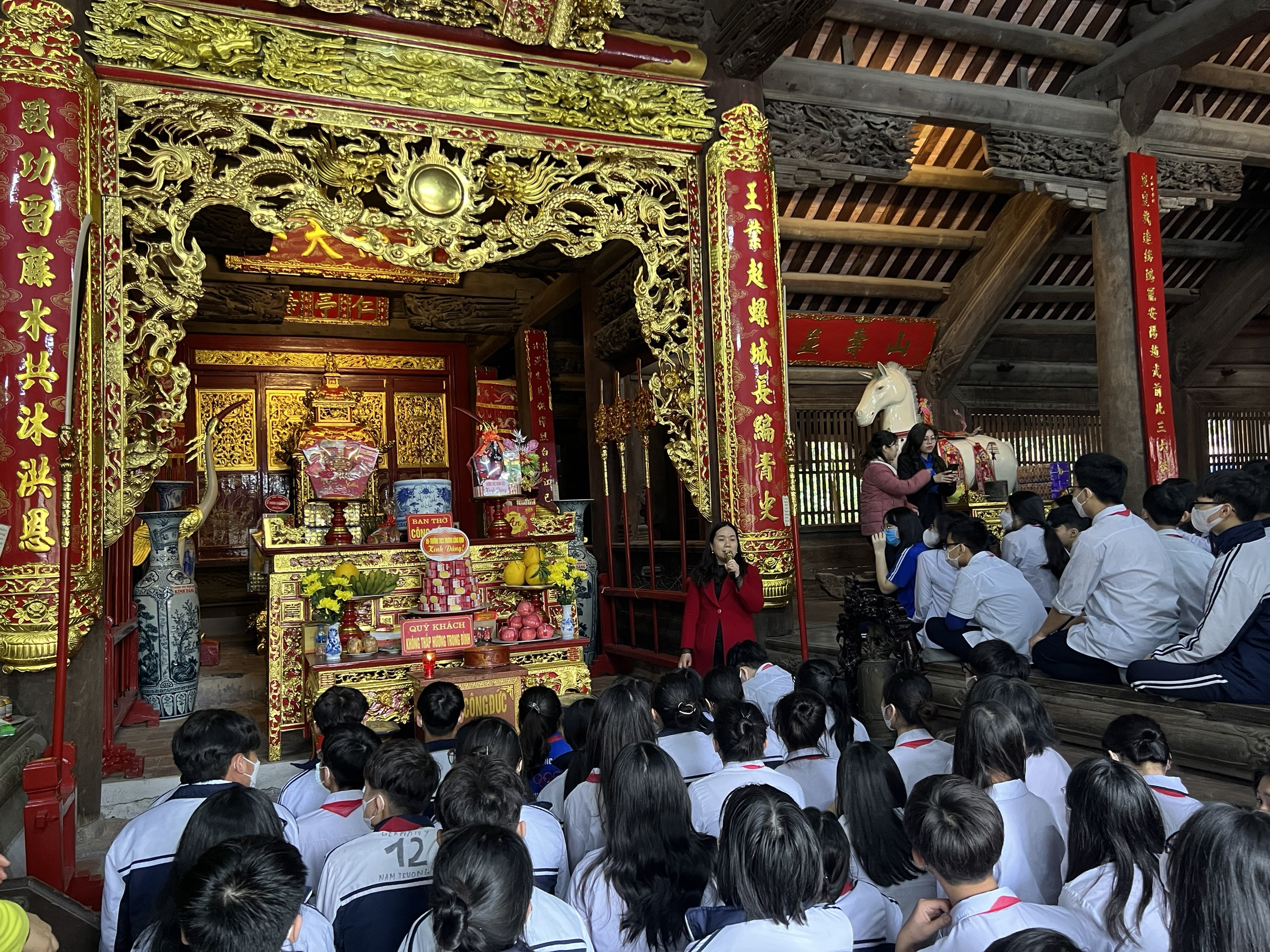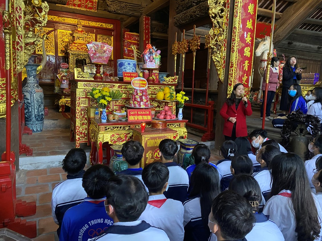Sau phần nghe giới thiệu về Đình Hàng Kênh, các thầy cô giáo và các em học sinh đã dâng hương và tham quan tìm hiểu về ngôi đình.