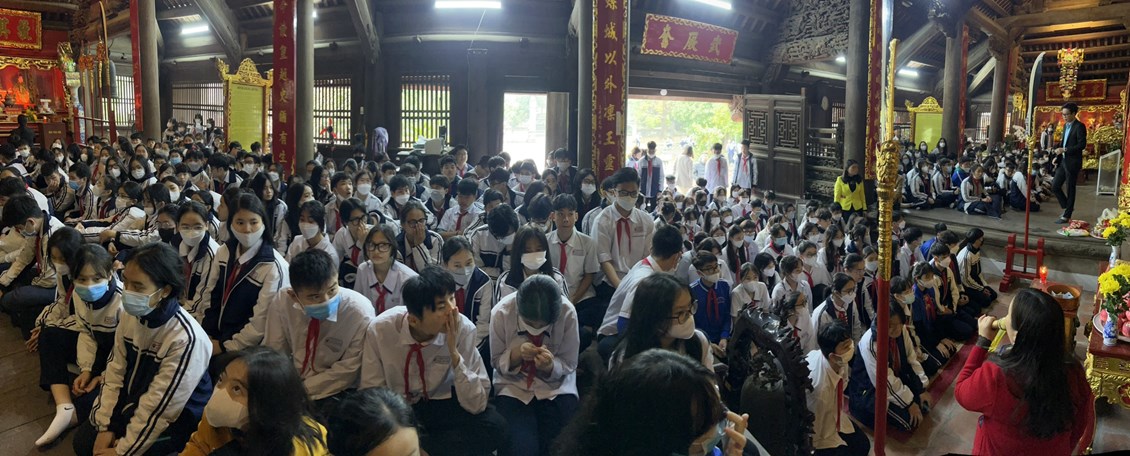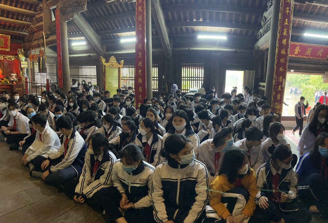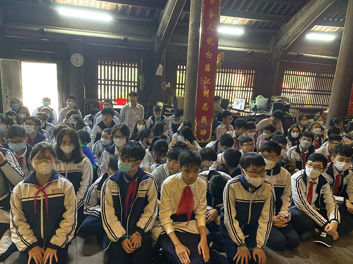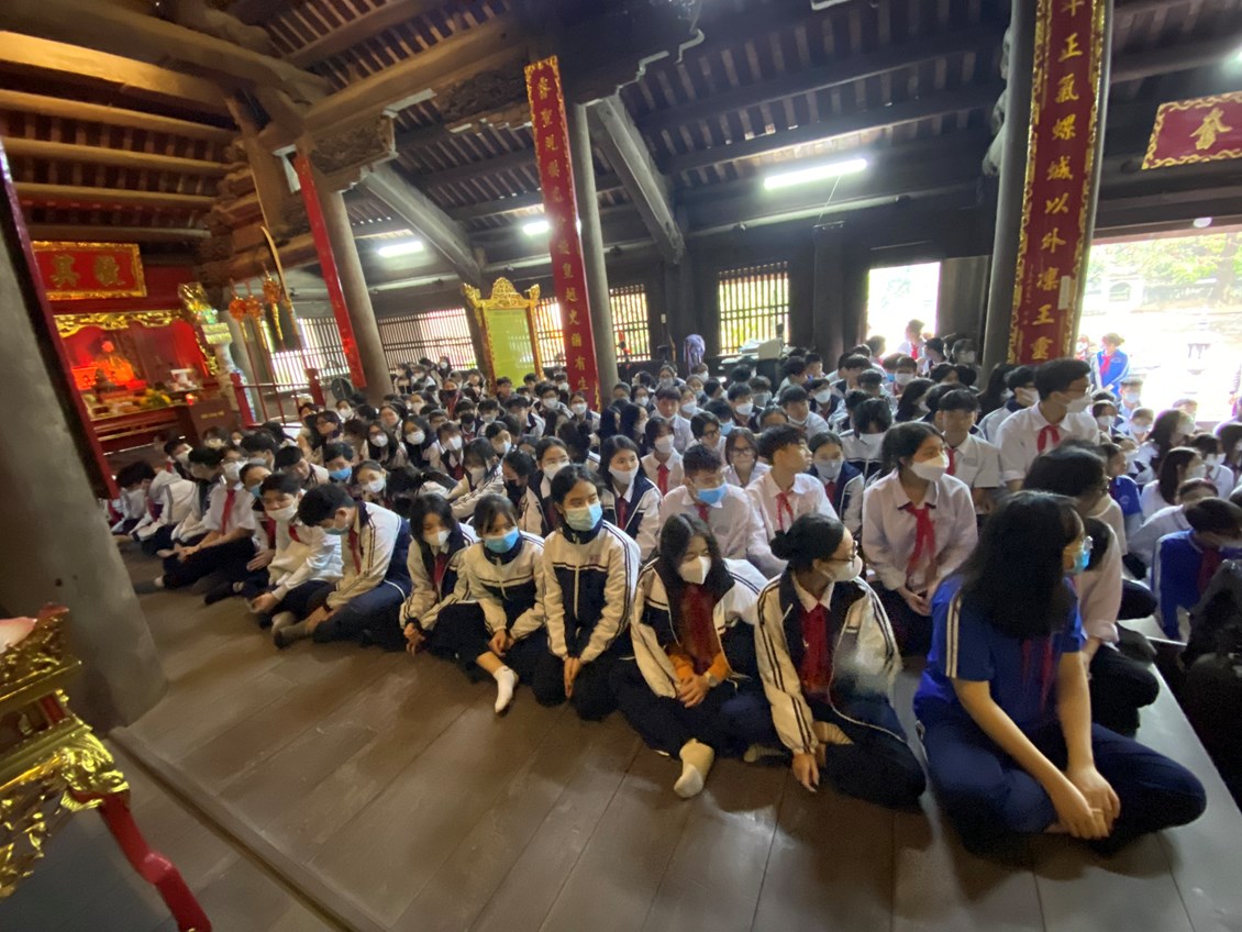 Sau phần nghe giới thiệu về Đình Hàng Kênh, các thầy cô giáo và các em học sinh đã dâng hương và tham quan tìm hiểu về ngôi đình.