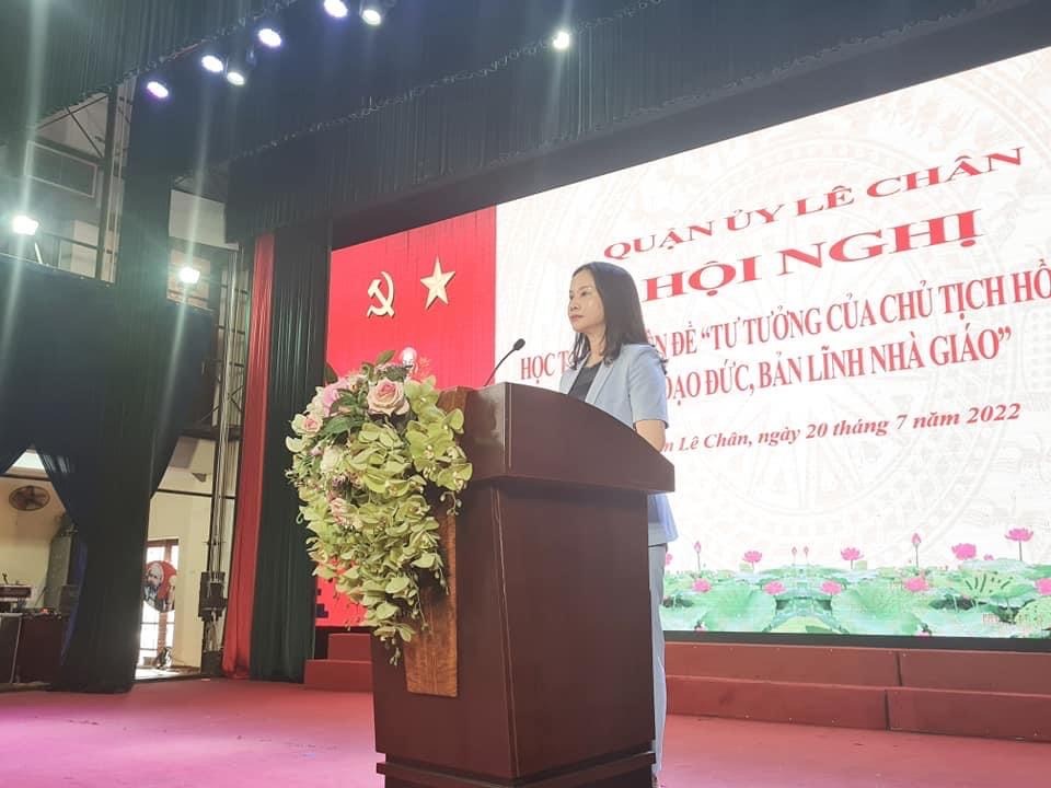 Thực hiện Kế hoạch số 90-KH/QU ngày 14/7/2022 của Quận uỷ Lê Chân về việc tổ chức Hội nghị học tập chuyên đề “Tư tưởng của Chủ tịch Hồ Chí Minh về đạo đức, bản lĩnh nhà giáo” cho cán bộ chủ chốt ngành Giáo dục và Đào tạo quận.