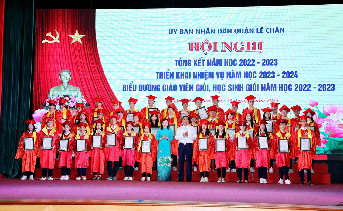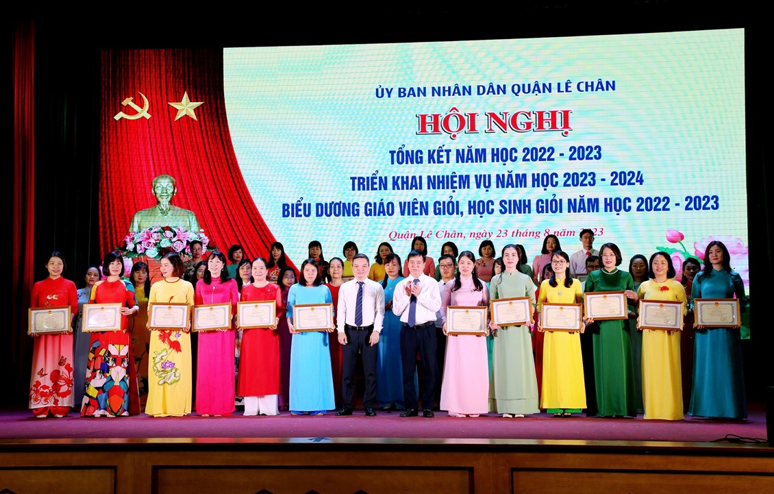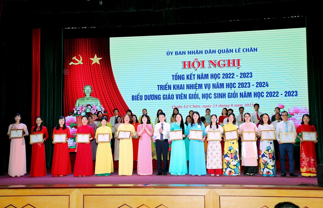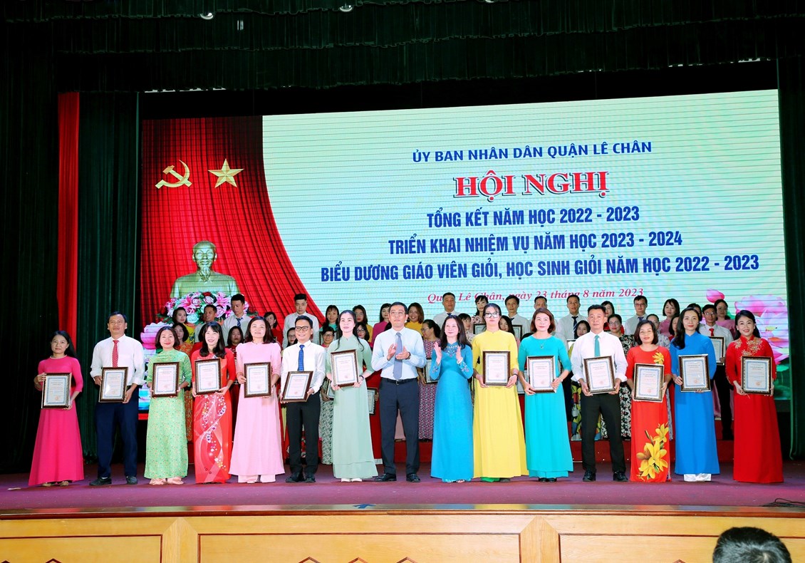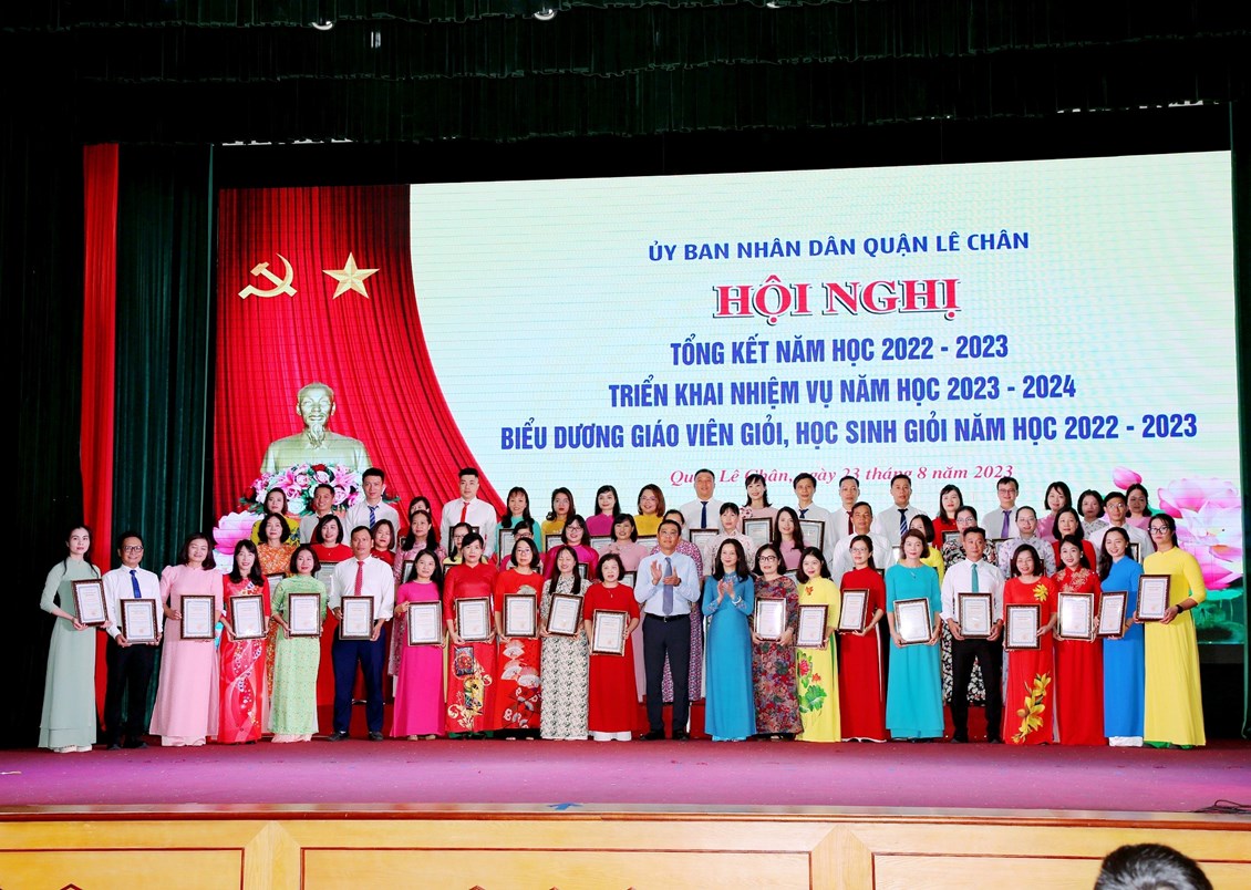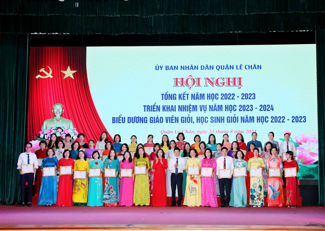 Sáng ngày 23/8/2023, UBND quận Lê Chân tổ chức Hội nghị tổng kết năm học 2022 - 2023 - Triển khai nhiệm vụ năm học 2023 - 2024 - Biểu dương giáo viên giỏi, học sinh giỏi năm học 2022 - 2023.