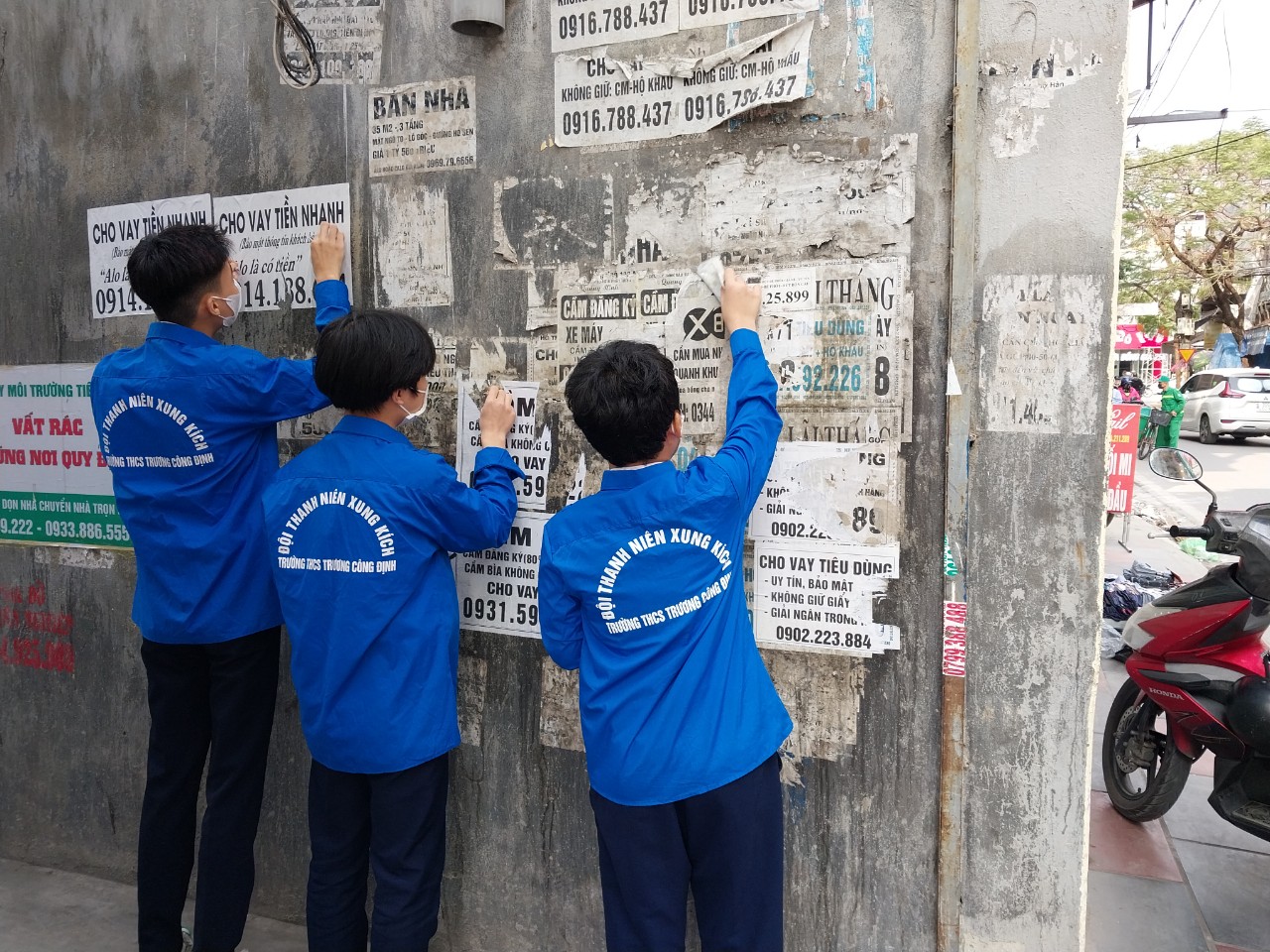 Hưởng ứng phong trào “Ngày thứ 7 cùng dân”; thực hiện sự chỉ đạo của Đoàn TNCS Hồ Chí Minh phường Hàng Kênh, Sáng thứ 7/18/3/2023, chi đoàn giáo viên đã tổ chức cho các em học sinh thuộc diện kết nạp đoàn tham gia dọn vệ sinh, xóa biển quảng cáo tại ngõ 162 và ngõ 63 đường Nguyễn Công Trứ phường Hàng Kênh, quận Lê Chân, thành phố Hải Phòng.