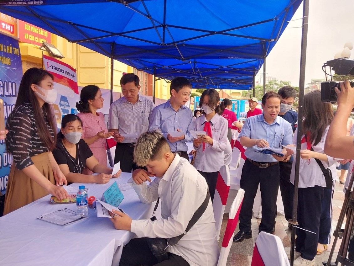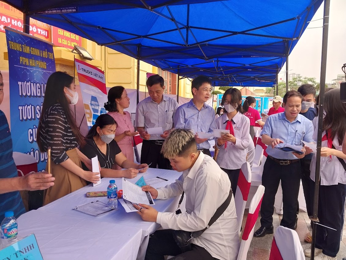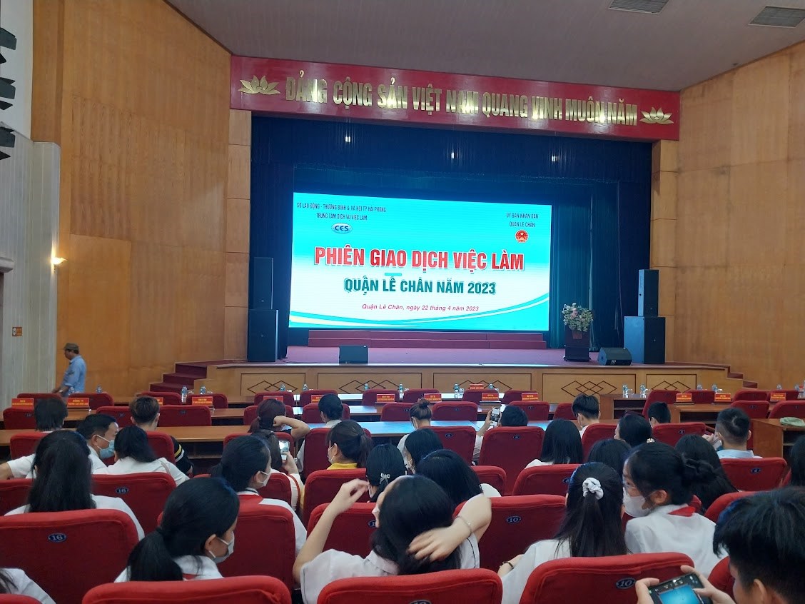 Thực hiện sự chỉ đạo của UBND quận Lê Chân, sáng thứ 7 ngày 22/4/2023, trường THCS Trương Công Định cử 30 em học sinh lớp 8B3 và lớp 8B5 tham dự Phiên giao dịch việc làm tại quận Lê Chân năm 2023 do UBND quận phối hợp với trung tâm Dịch vụ việc làm Hải Phòng tổ chức.