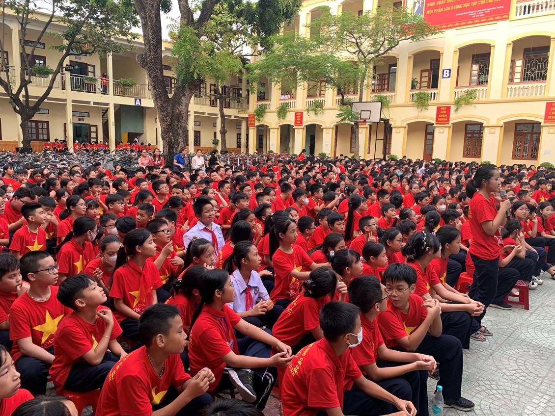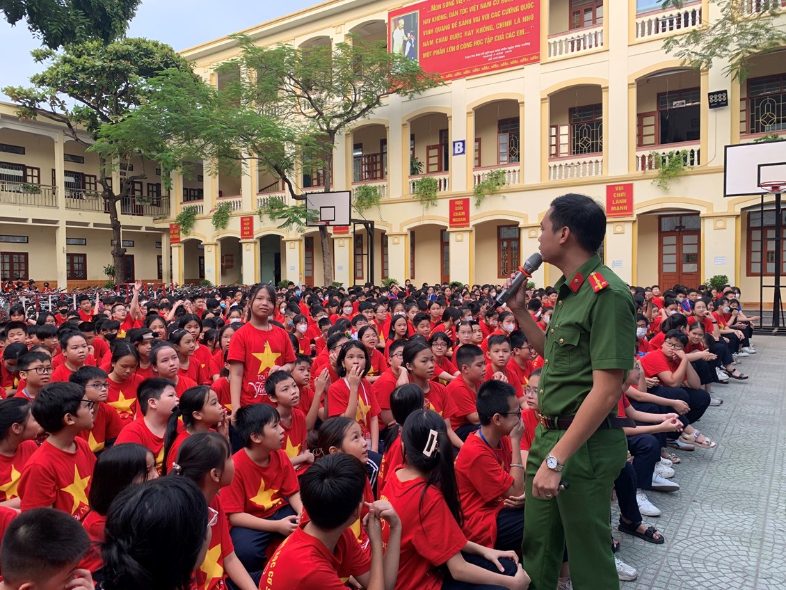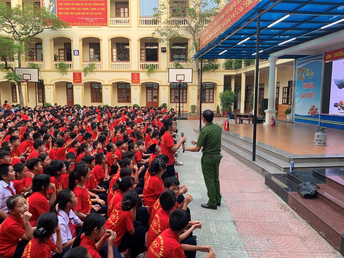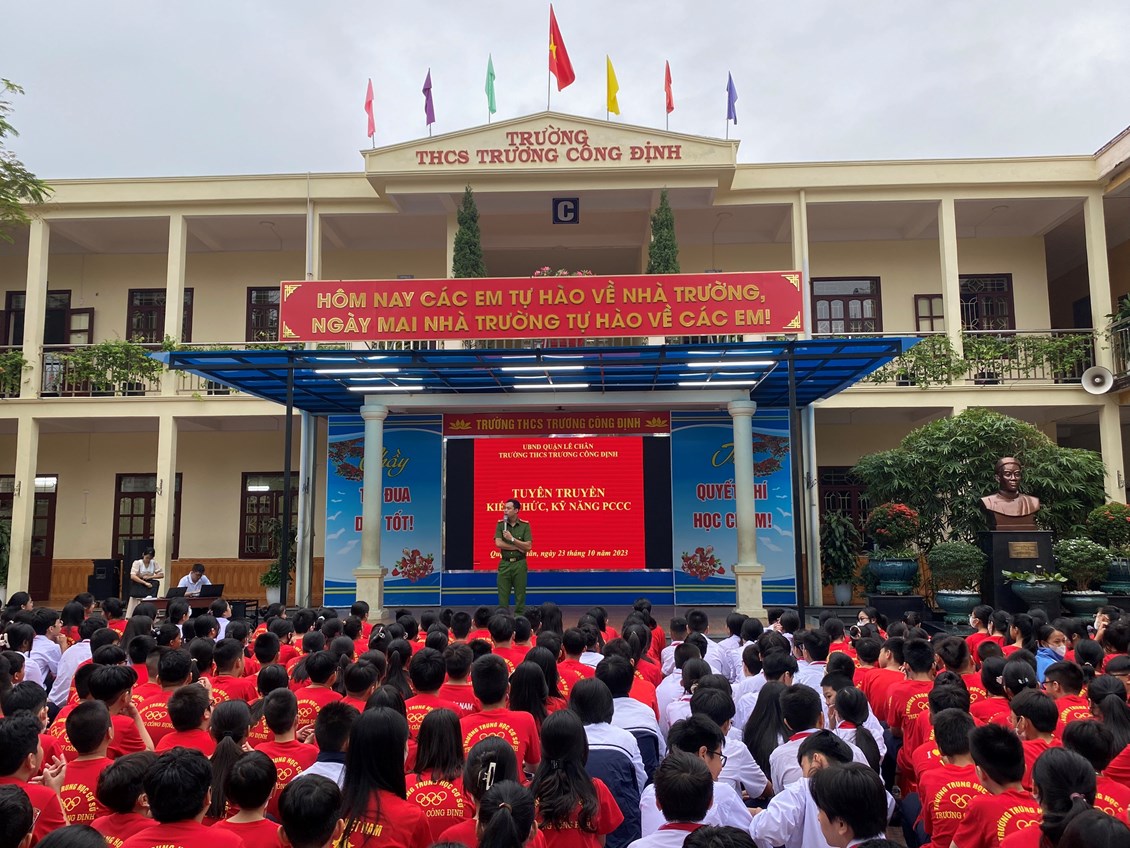Trong buổi tuyên truyền, em được học sinh được nghe thượng úy Phạm Tuấn Đạt - Cán bộ Đội cảnh sát PCCC Công an quận Lê Chân tuyên truyền, hướng dẫn những kĩ năng cơ bản về quy trình xử lý khi có cháy nổ xảy ra, nắm được một số kỹ năng thoát nạn cần thiết khi ở trong các đám cháy công trình cao tầng, các đám cháy có nhiều khói, biết phân loại các phương tiện chữa cháy, tính năng tác dụng của các loại phương tiện chữa cháy.