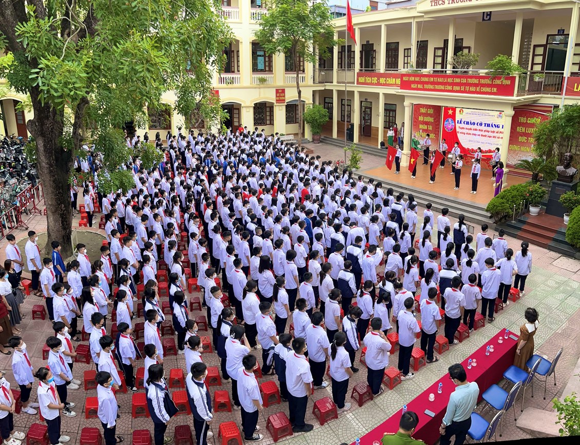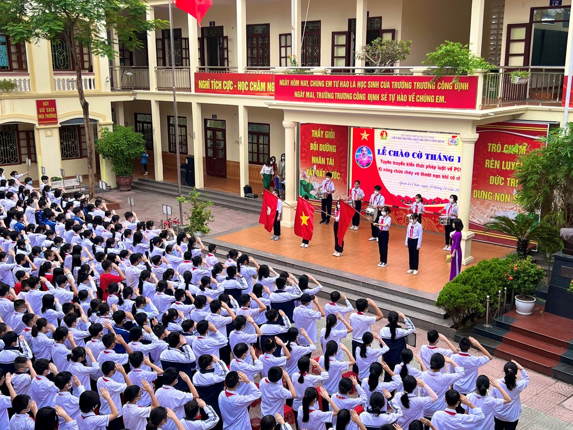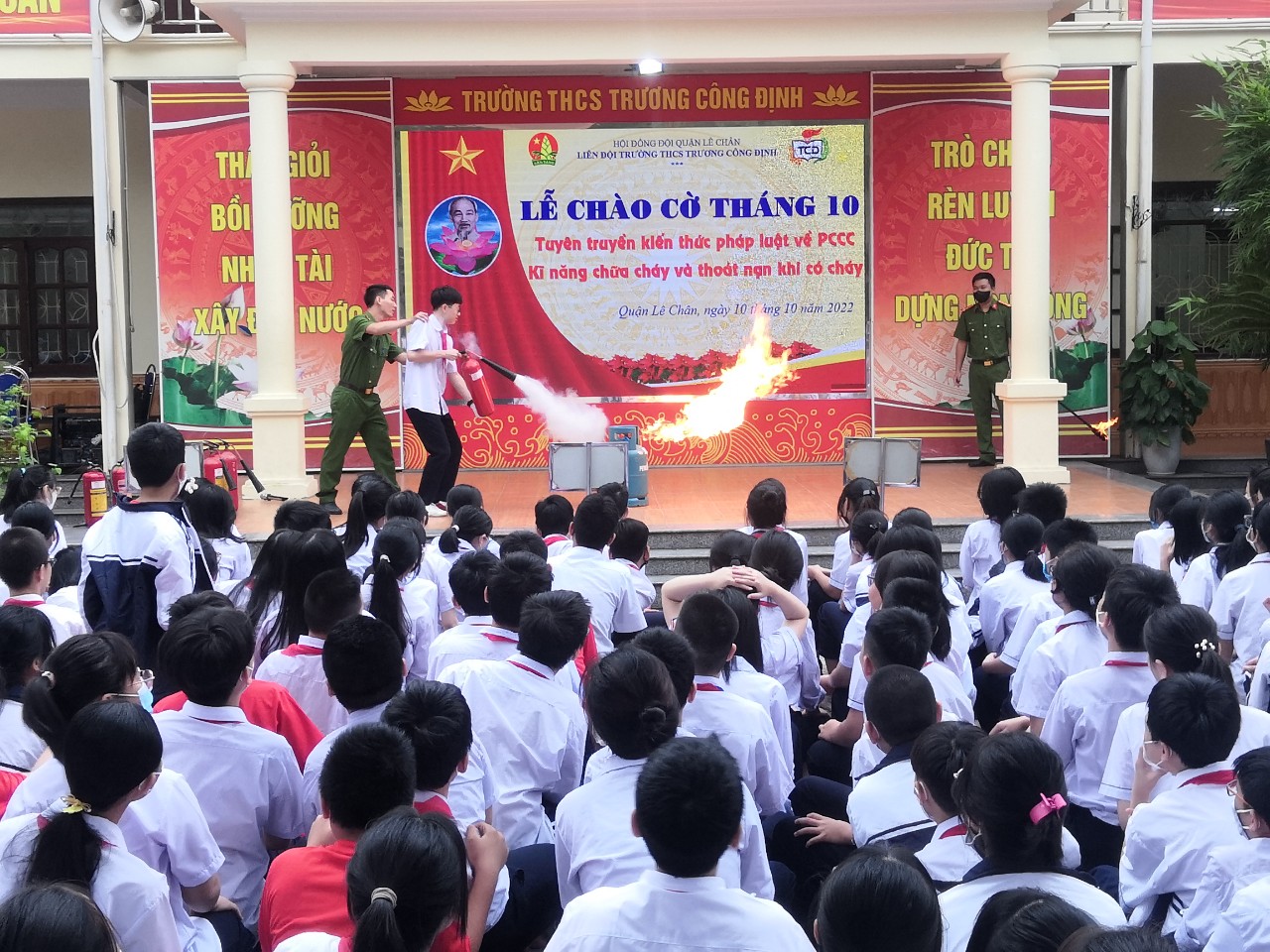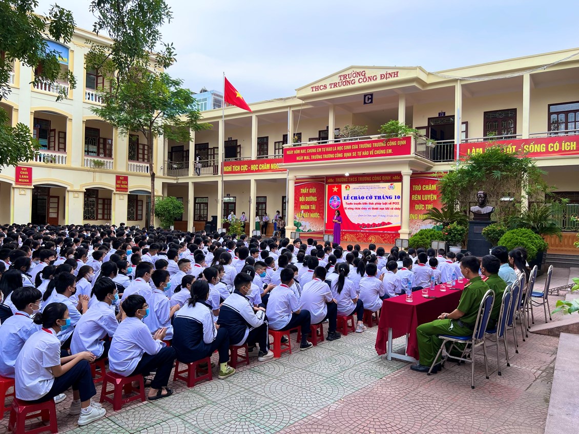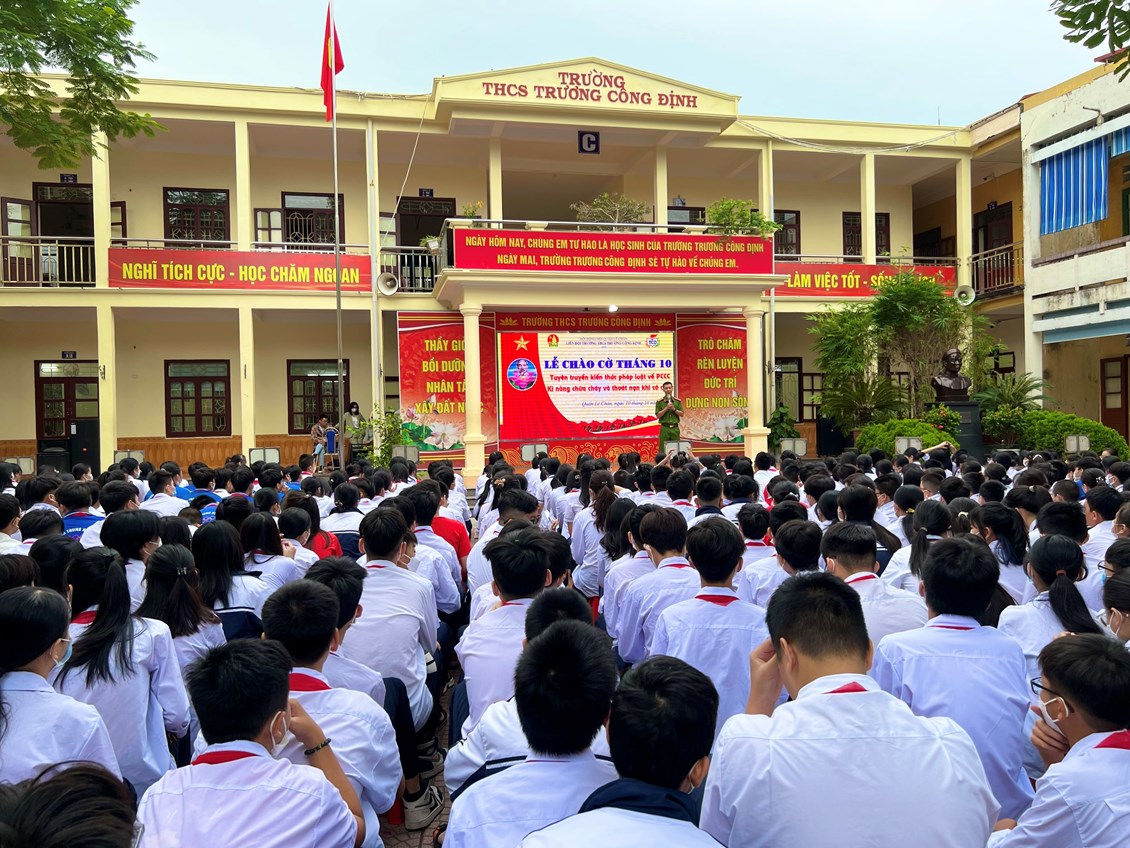 Hôm nay, thứ Hai ngày 10 tháng 10 năm 2022, trường THCS Trương Công Định tổ chức hoạt động Tuyên truyền kiến thức pháp luật về PCCC – Kỹ năng chữa cháy và thoát nạn khi có cháy cho các em học sinh.