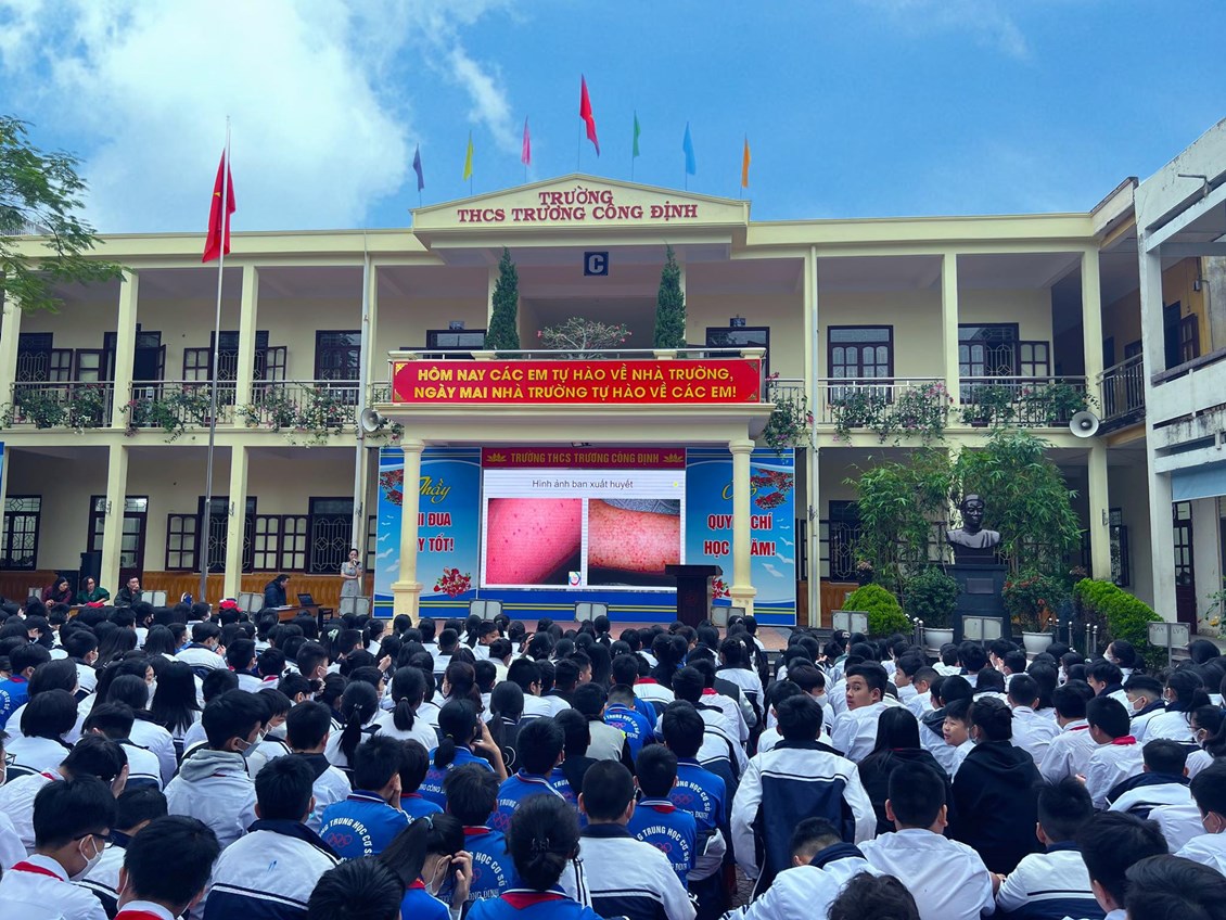 Thời tiết hiện đang vào mùa, rất thuận lợi cho muỗi truyền bệnh sốt xuất huyết. Do đó việc tuyên truyền về cách phòng chống dịch bệnh là rất cần thiết. Thực hiện sự chỉ đạo của Trung tâm y tế phường Hàng Kênh, được sự đồng ý của Ban giám hiệu nhà trường, thứ 5/01/12/2022, trường THCS Trương Công Định đã tổ chức buổi tuyên truyền phòng tránh bệnh sốt xuất huyết cho các em học sinh trong nhà trường.