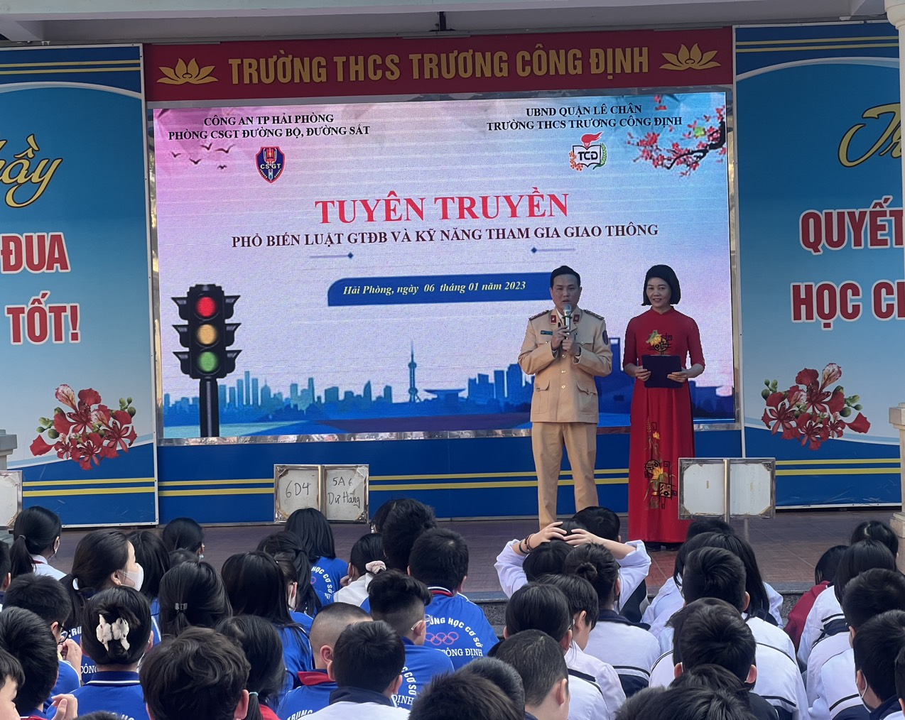 Thời điểm cuối năm, đặc biệt là dịp giáp tết Nguyên đán đang đến gần, nhu cầu đi lại, vận chuyển hàng hóa của người dân tăng cao do đó, tình hình trật tự an toàn giao thông tiềm ẩn nhiều nguy cơ gây mất trật tự An toàn giao thông. Bên cạnh đó, tình hình vi phạm về sản xuất, mua bán, sử dụng trái phép pháo nổ lại có chiều hướng gia tăng, ảnh hưởng đến an ninh trật tự, an toàn xã hội. Thực hiện Kế hoạch số 04/KH-UBND ngày 03/01/2023 của Ủy ban nhân dân quận Lê Chân về việc tổ chức đón xuân Quý Mão năm 2023 và kỷ niệm 93 năm ngày thành lập Đảng cộng sản Việt Nam; thứ 2/09/01/2023 trường THCS Trương Công Định đã tổ chức Tuyên truyền Luật giao thông đường bộ - Không sử dụng trái phép các loại vũ khí, vật liệu nổ, công cụ hỗ trợ và pháo trước trong và sau Tết nguyên đán.